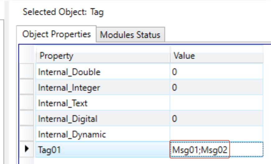 Continuing with the same example, but now in the image below, we have Msg01;Msg02, where Msg01 will be directed to the SUP01 variable, and Msg02 will be directed to the SUP02 variable.