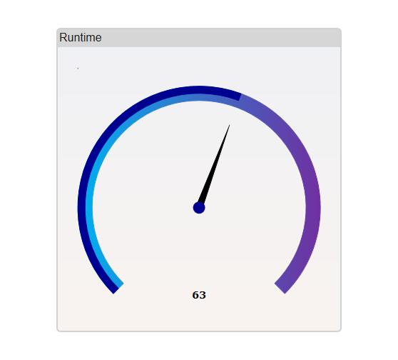 During runtime, the Center Value Circular Gauge actively displays data from connected field devices and processes. This gauge presents real-time data within its central area, offering a clear view for ongoing monitoring. The TCenterValueCircularGauge control, by displaying the value at the center, facilitates immediate data reading and interpretation, supporting operators in their monitoring tasks.