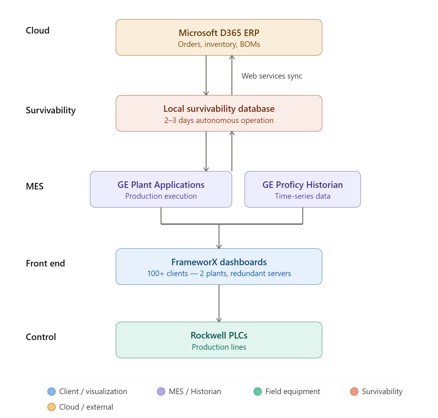 Challenge: After moving ERP to Microsoft D365 in the cloud, protect highly automated 24/7 production from cloud ERP unavailability (scheduled maintenance, system updates, or unplanned outages).