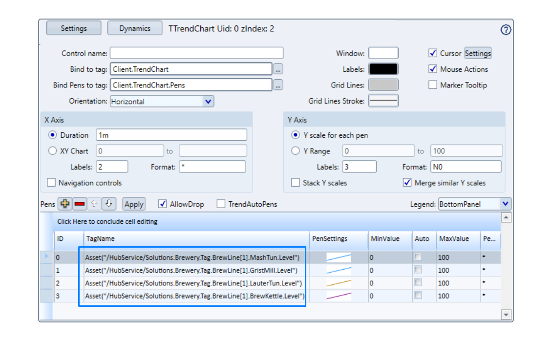 With this tool, you can access the EDGE solution Historian and plot current and historian data on the TrendChart within the UI solution.