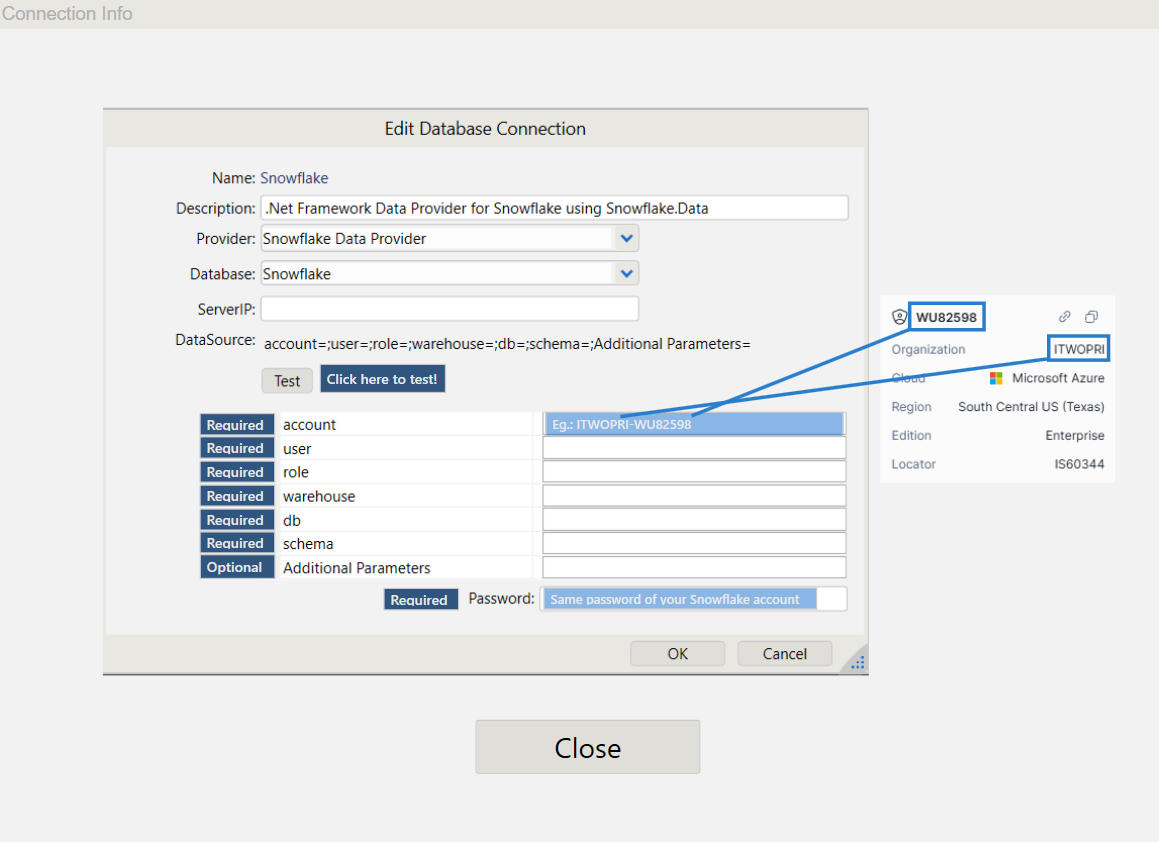 The necessary files for using Snowflake in Datasets with the last version of the FrameworX are not yet included. To run this example correctly, download the required files from the Snowflake_Connector.zip link at the top of the page. Extract the contents and place the files in a new folder within the software installation directory: