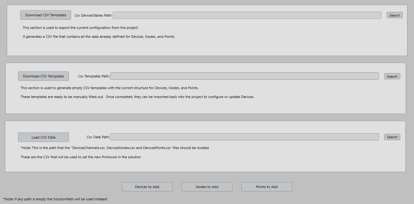 This solutions demonstrate how solutions can be dynamically configured or updated using external CSV files. It supports export, template generation, and import of the devices tables.