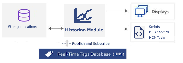The module subscribes to all configured historian tags and evaluates trigger conditions. Data is stored to designated locations based on table settings, with automatic buffering if databases are temporarily unavailable.