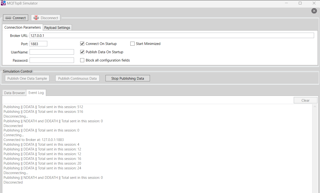 The MQTTspB Simulator is integrated with the Data Explorer Tools, making testing easier and faster by enabling the publication of up to 30,000 simulated values to the MQTT broker from the same design environment. This facilitates project testing, communication validation with the software platform MQTT client, and testing of the new Dynamic Tag Provider functionality with MQTT.
