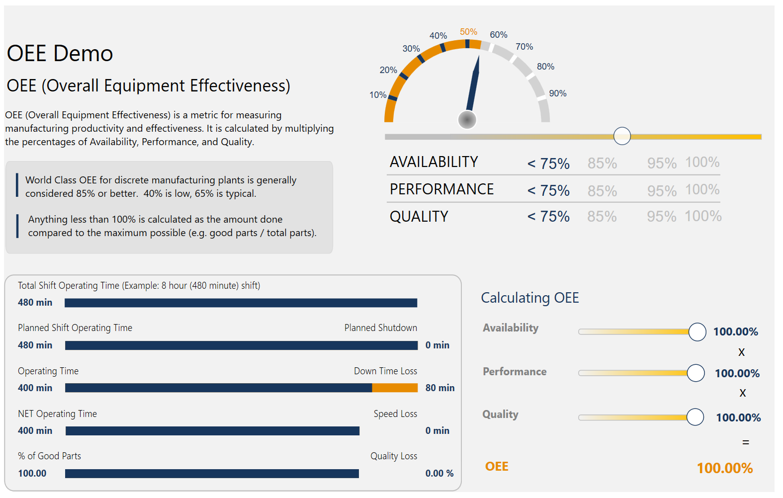 Download the Solution Database here: OEE Calculation Example.db