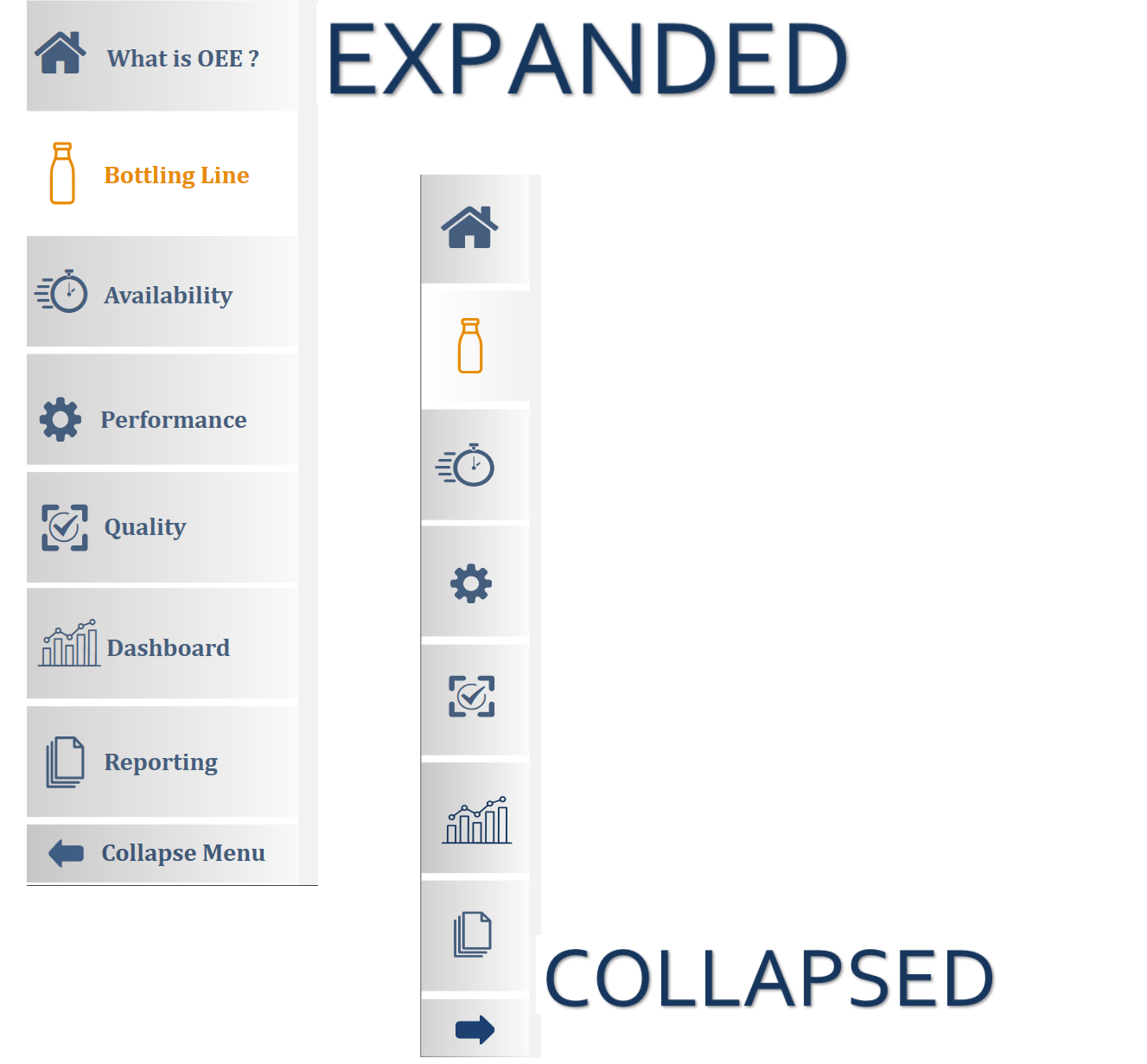 Our “What is OEE” demo project shows off both an expanded and collapsed menu style.