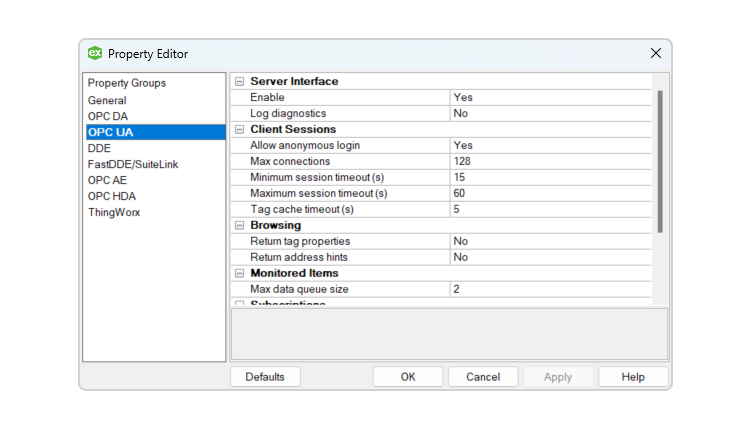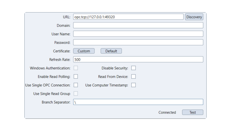 Connection with Kepware OPC Server - No Security