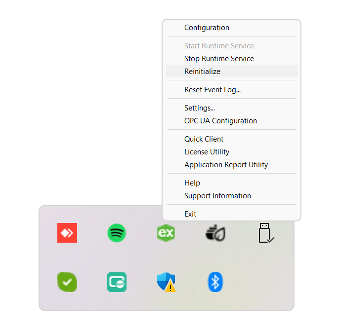 2 - Right-click on the following icon in the hidden icons section of Windows and select OPC UA Configuration: