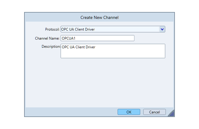 6 - Open the software as administrator, navigate to Devices/Channel section and create a new channel using the OPC UA Client Driver protocol;