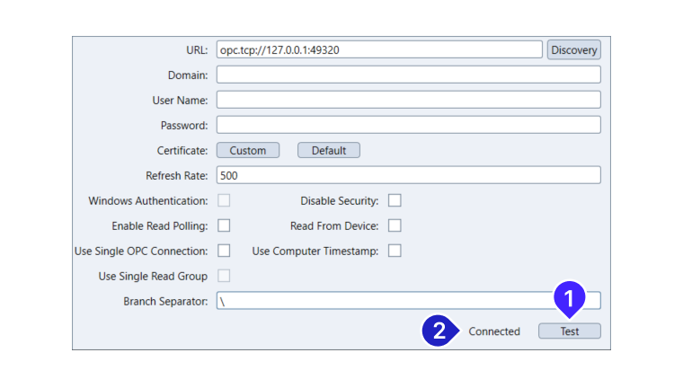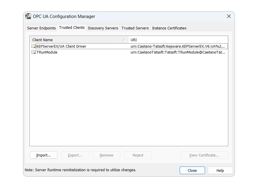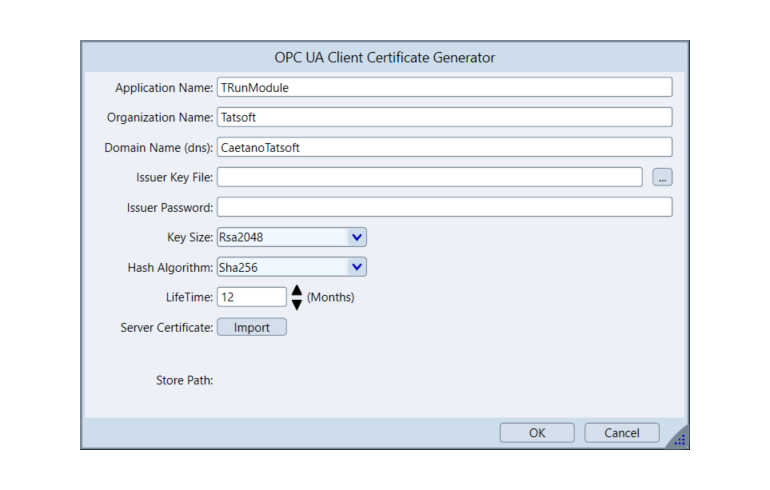 10 - Open the OPC UA Configuration and import the certificates from step 11 and step 10.