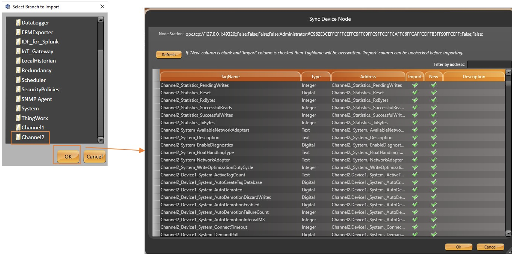 With this tool, you can choose which Branch from the OPC Server namespace will be accessed and filter the variables that will be imported. The Tags and Points will be created automatically.