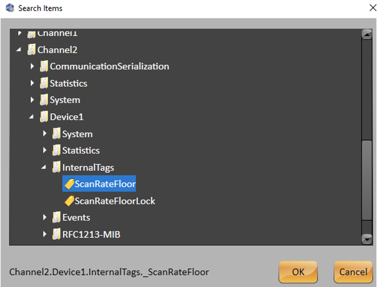 Choose the OPC Server item that will communicate with the Project Tag. You can type the OPC Server item name into the textbox, or you can browse the OPC Server items in the Cell Editor.