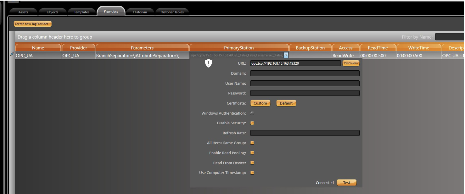 To configure the OPC UA protocol as a TagProvider, go to Edit → Tags → Providers, and create a new provider for the CanaryLabs protocol.
