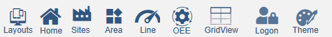 The header is a navigation component that allows users to seamlessly switch between different application pages. The application primarily offers two ways to navigate: the header provides access to the main pages, while the asset tree determines which data is displayed on the page. Navigation can also be performed using the asset tree. Additionally, the header includes options to select the layout type, log in, and change the theme.