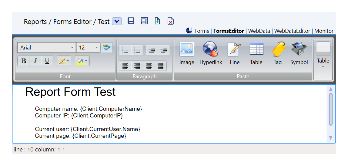 The ReportViewer is a graphical component for displaying Report Forms defined and configured in the Reports module. To use it: