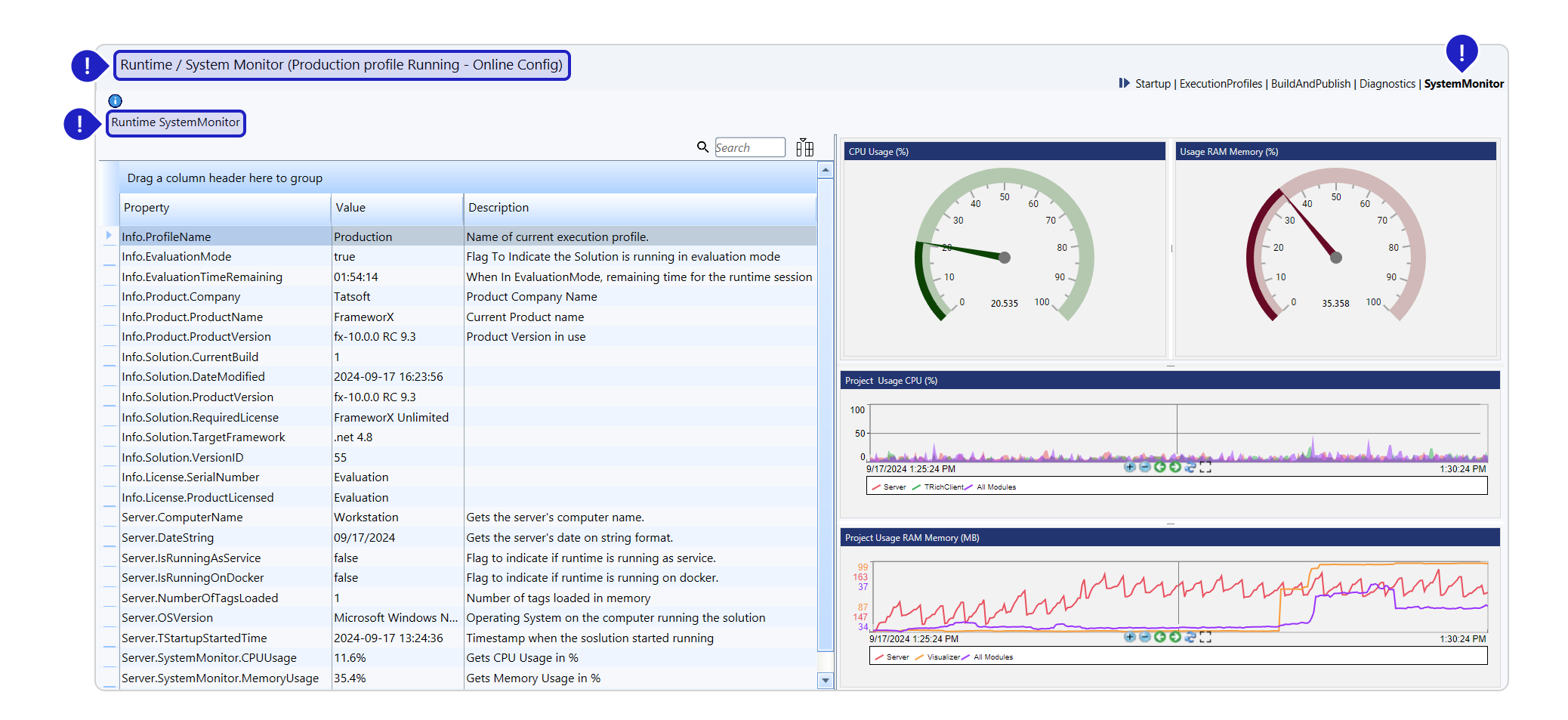 Reference  Solution  RuntimeUIStartup | Build and Publish | Execution Profiles | Monitor