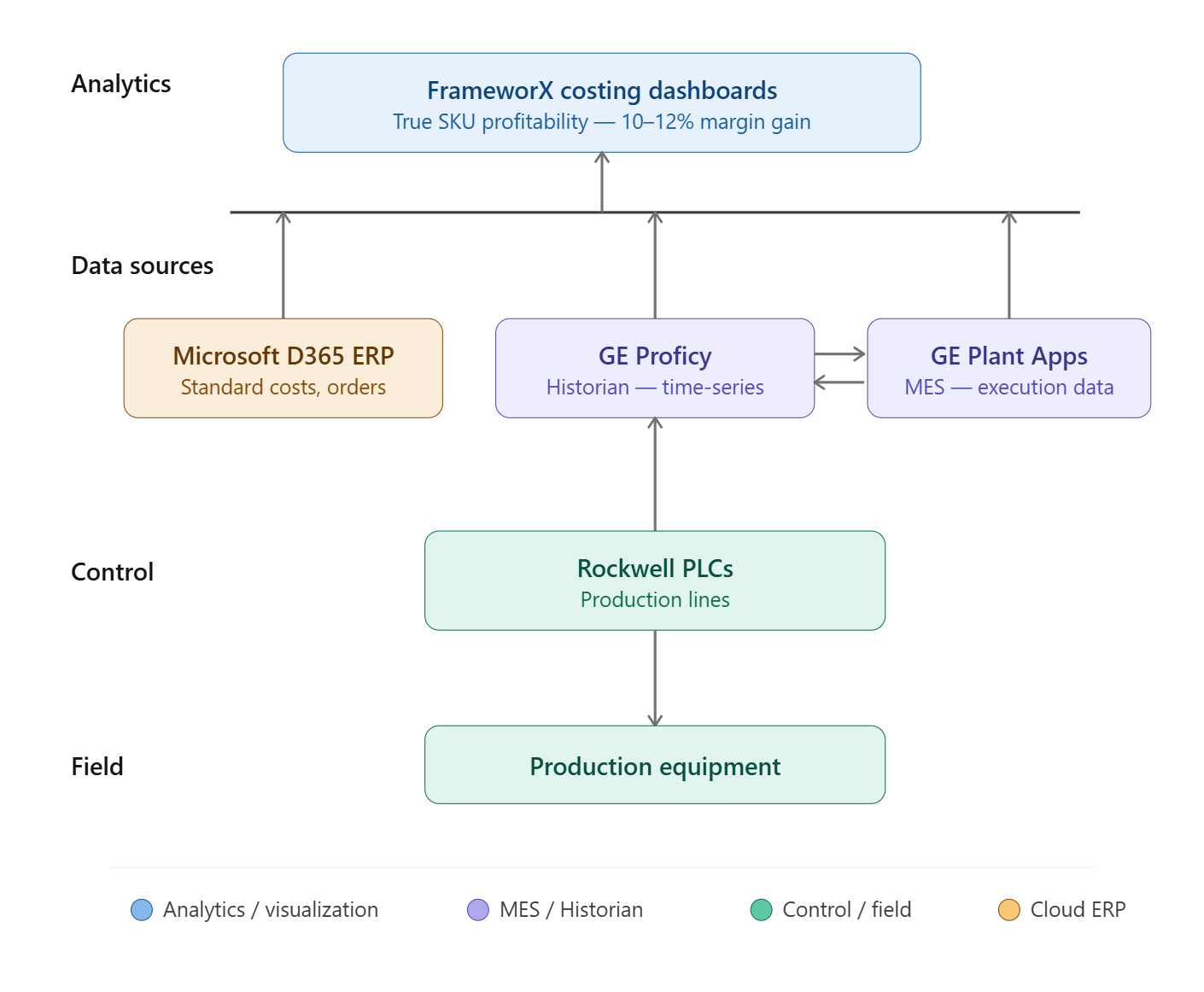 | Analytics | FrameworX Dashboards | True SKU profitability visualization |