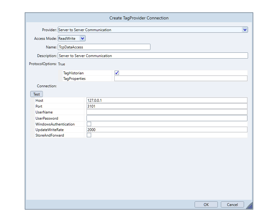 TcpDataAccess TagProvider facilitates the Server to Server communication, allowing two solutions to interact directly with another, exchanging and synchronizing data efficiently. This is especially useful in scenarios where you need to relay data from one system to another without manual interventions, ensuring data continuity and real-time updates.