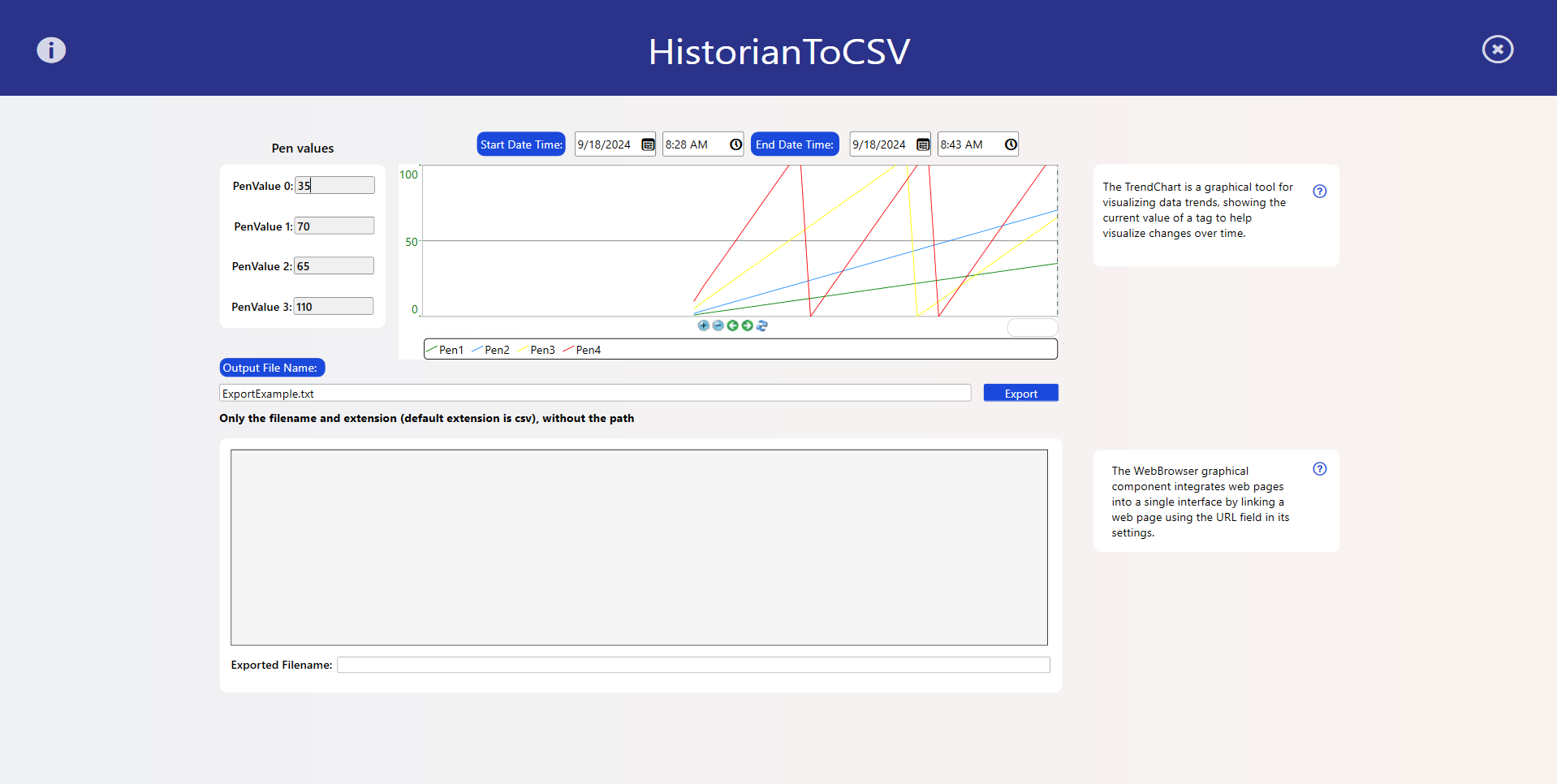 In the Export Historian to CSV, we've used the rectangle shape to organize the content in the display.