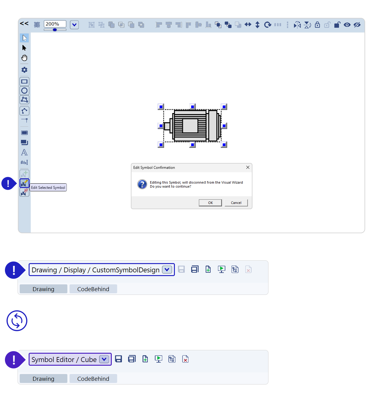 When you customize a symbol created using the Wizard, a warning message will let you know the wizard will no longer be able to applied to that specific symbol.