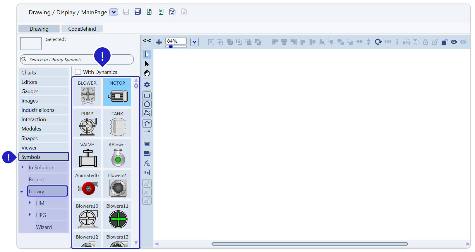 The current Symbol Wizards includes the following SCADA elements: Tank, Valve, Blower, Motor and Pump.