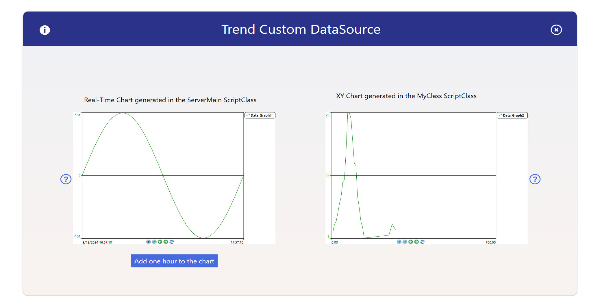 When creating a TrendChart, you can associate a HistorianTag with a HistorianTable to supply data points. This configuration is done through the Historian section. These tables can either receive data from databases accessed via software platform or from a script within a script class, accessible under Scripts / Classes.