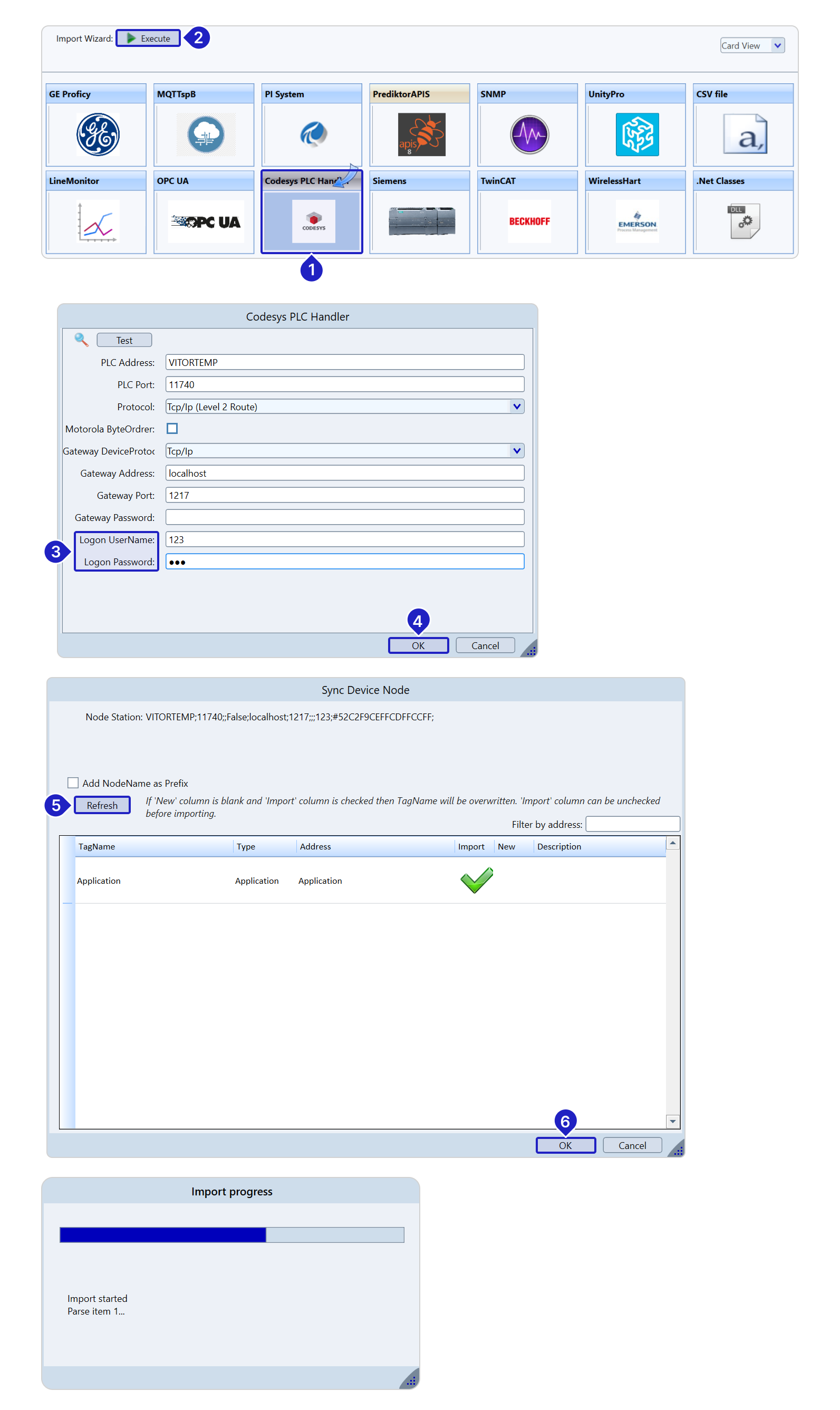 The tutorial in the image below shows how to import tags from Codesys PLC Handler.