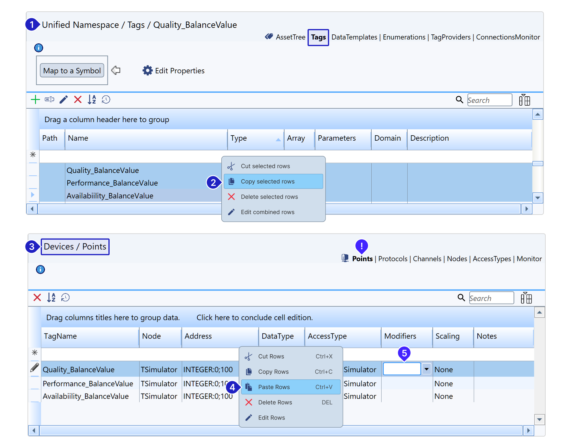You need to configure the Points that will be used. Access Devices → Points to configure points defining their names, Node, Tags, and Address.