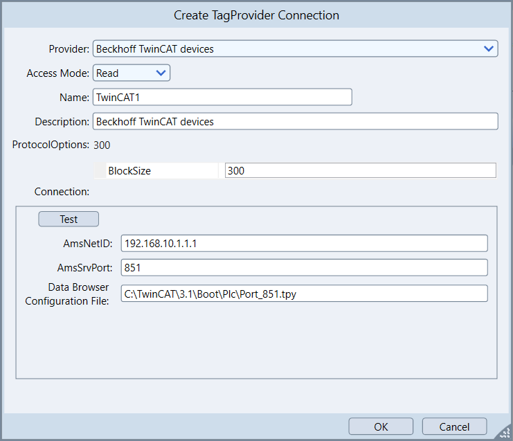 Provider | Specifies the system the TagProvider will interface with. In this case, it is Beckhoff TwinCAT devices. |