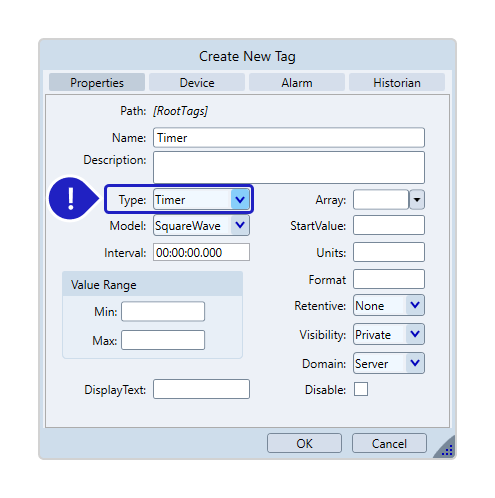 Expression: Enter the expression. For example: Tag.a + 1, or Tag.a + Tag.b, or Math.Cos(Tag.angle) * Math.PI.