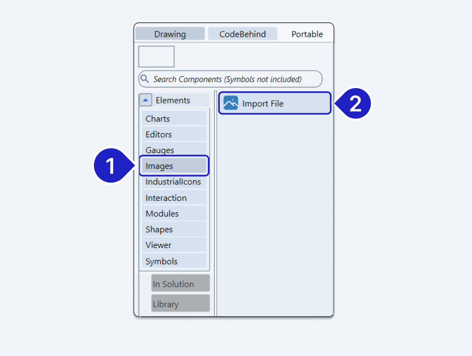 Images are used to insert an external image file (icon, wallpaper, object, or background image) from your computer into the project configuration. They can be managed under Displays → Images. Once imported, the original file is no longer needed.