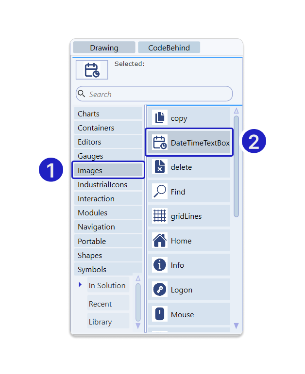 There are three main repositories for reusable graphical elements: the Images Library, the Symbol Factory Library, and the Local Symbols Gallery.