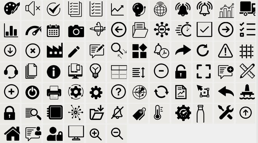 Industrial icons are graphical components used in user interface navigation design, enabling the creation of globally recognizable and user-friendly interfaces. Their purpose is to facilitate intuitive navigation within solution displays. This page provides information about industrial icons and demonstrates how to use them in your solutions.