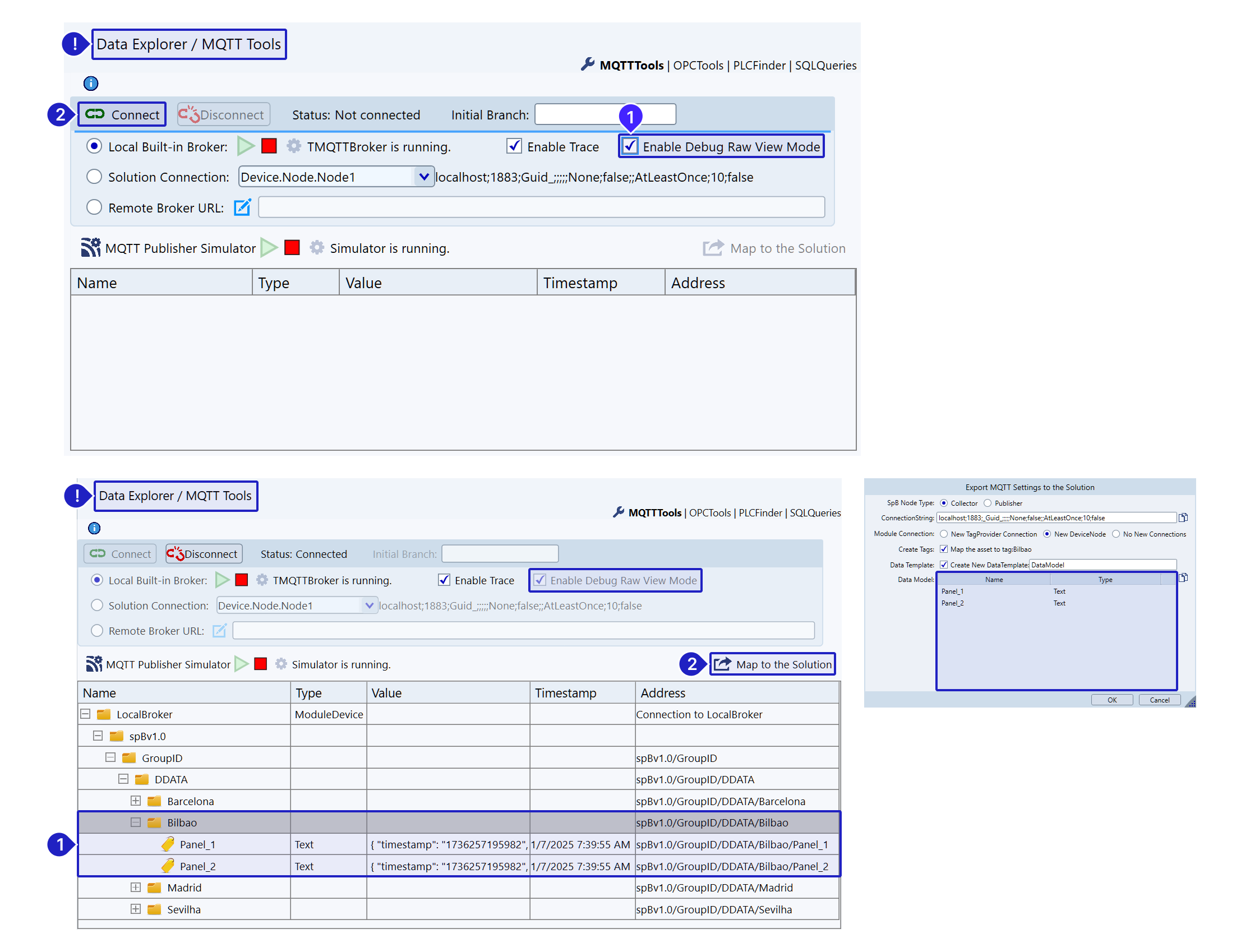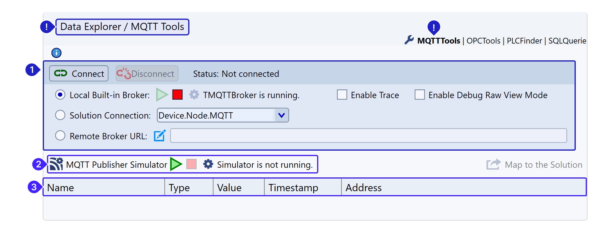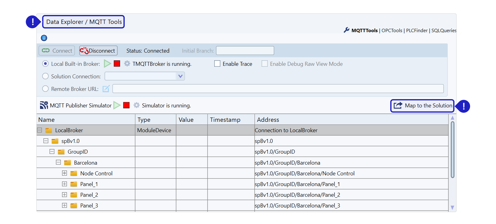 To speed up the testing of these connections, the Data Explorer tool allows you to easily select the settings and explore the connection and data of the MQTT broker.