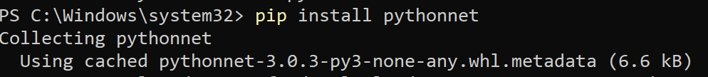 Note: For Python versions above 3.12, Pythonnet is not available. For more information, visit their documentation.