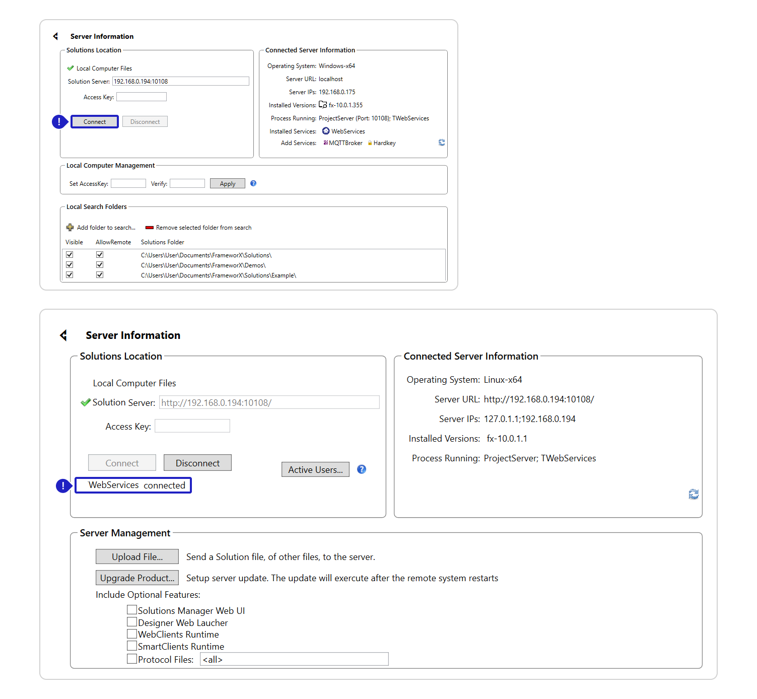 Under ProjectServer click on Remote and enter your Cisco's IP Address (syntax: http://<IpAddress>:3100/