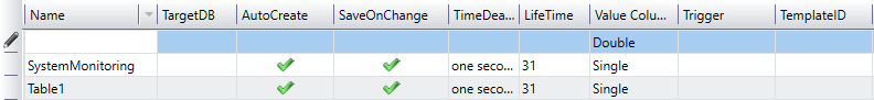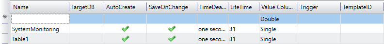 Most configurations, such as tags, alarms and users, are stored in tables. In most tables, you can add and edit information using the insertion row.