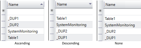 Click a column name to sort by that column and to change the order to ascending, descending, or none. When none is selected, the internal row ID is used: every DataGrid has an internal column named "ID".