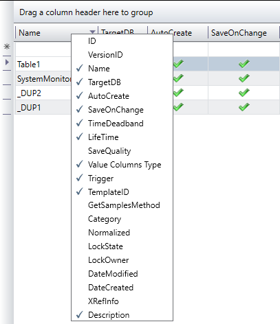2. A list of all available columns for that table will be displayed. Columns with a check mark next to them are displayed in the table.