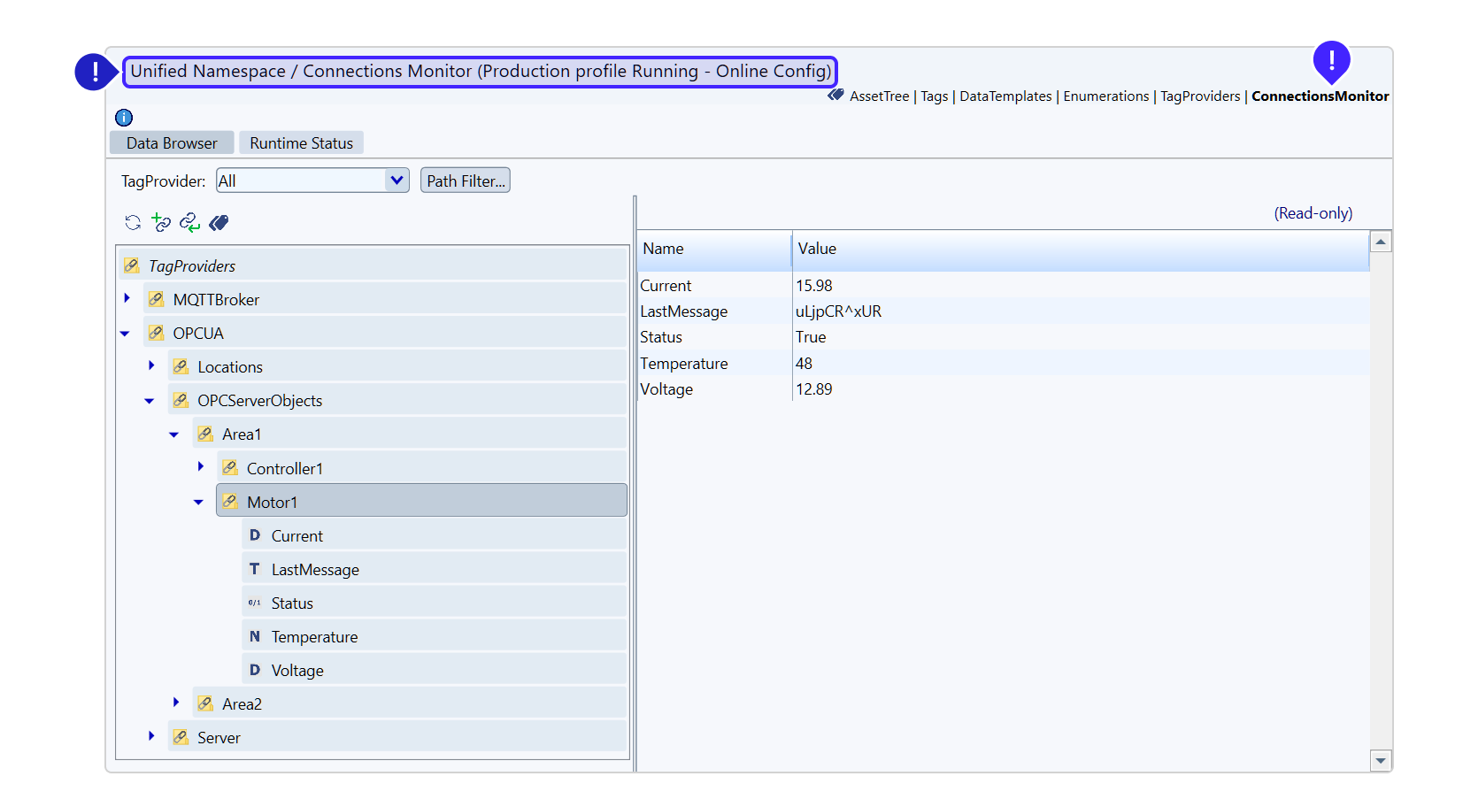 Unified Namespace. Connections Monitor. Data Browser. Actions.png