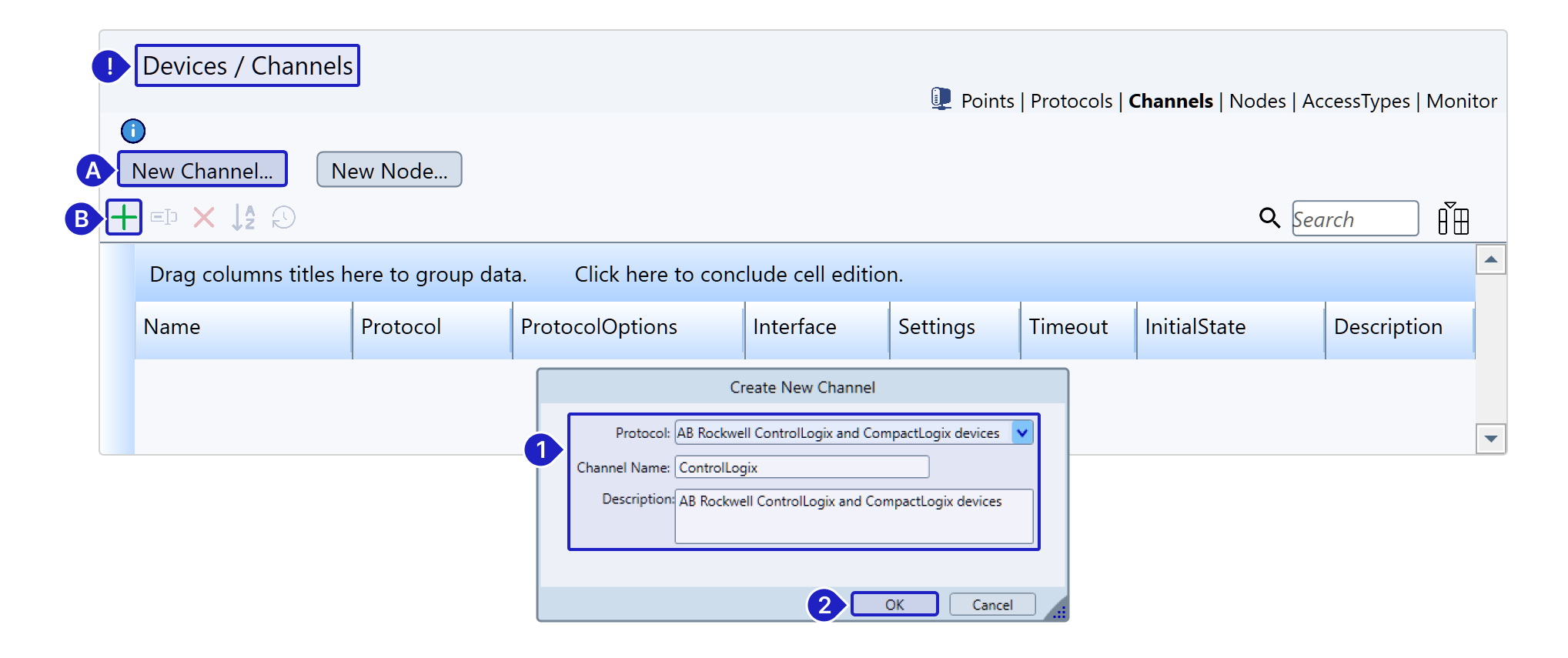 Devices. Channels. Create New Channel dialog. ControlLogix.png